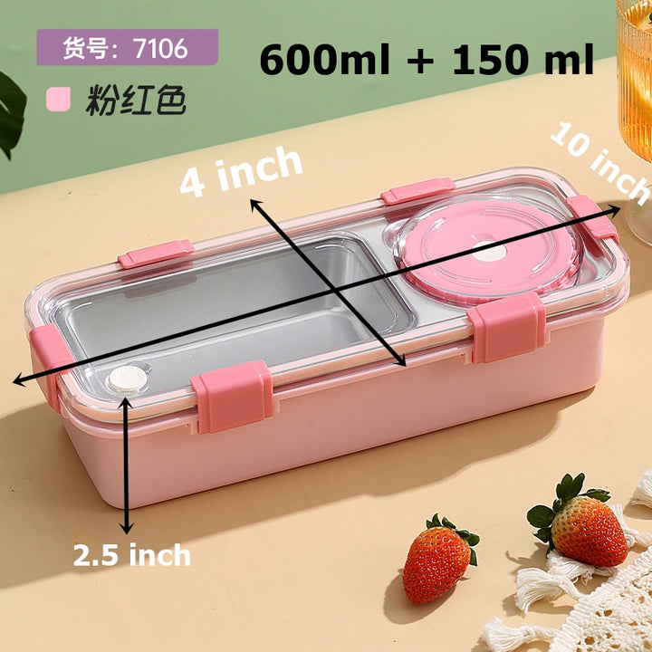 2 Compartments Stainless Steel Lunch Box With Sauce Pot