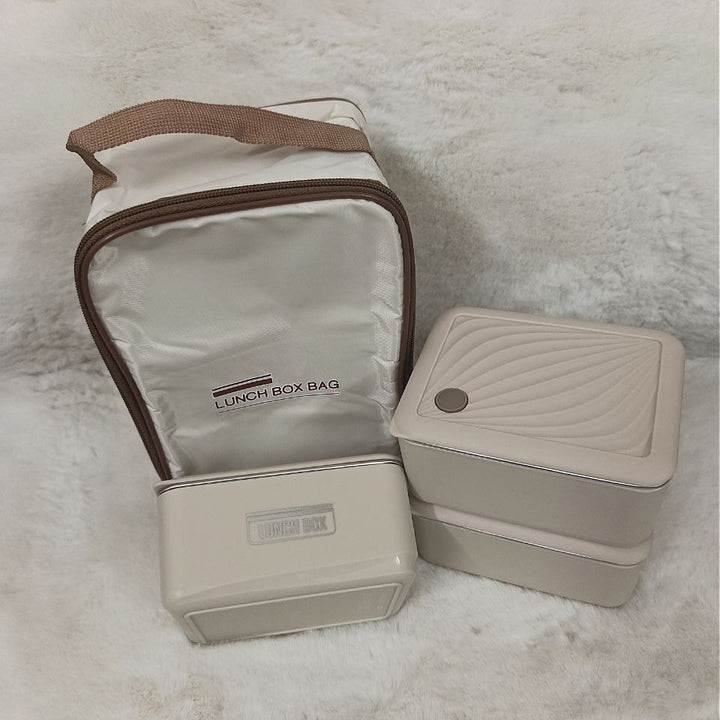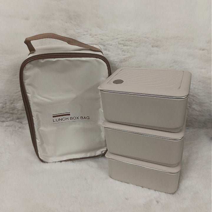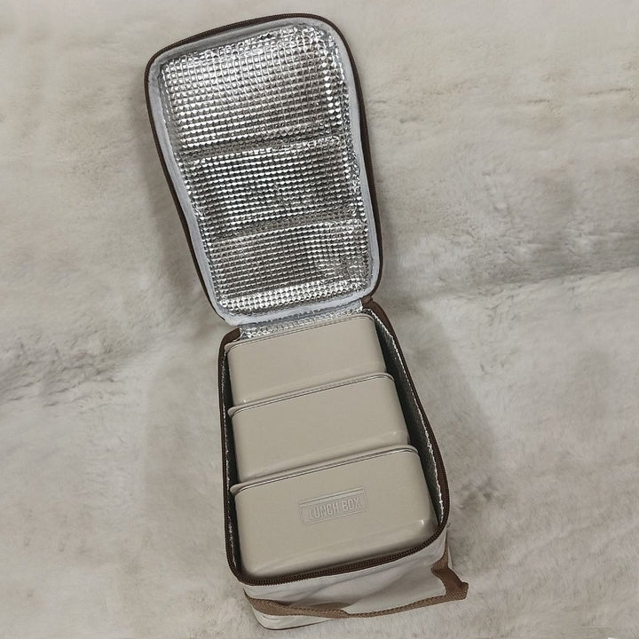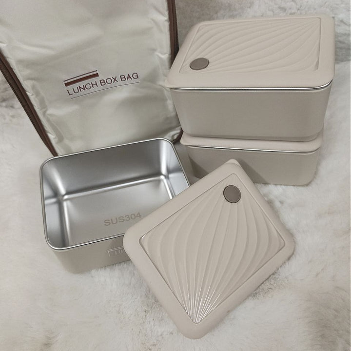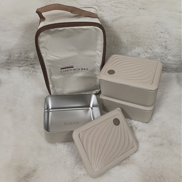 3 Piece Square Stainless Steel Lunch Box With Foil Bag