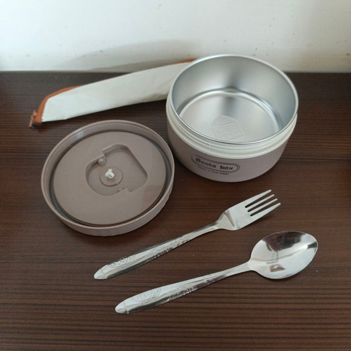 4 Piece Stainless Steel Brown Lunch Box With Foil Bag And Cutlery