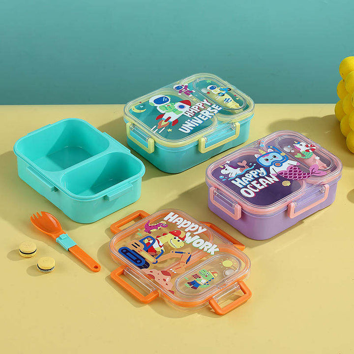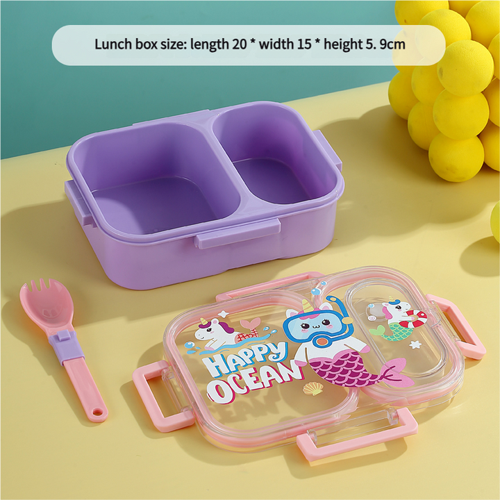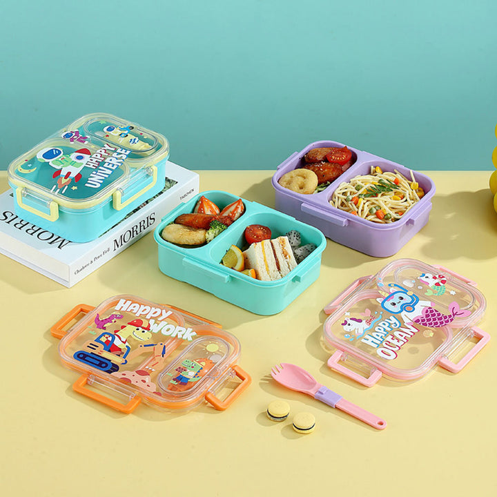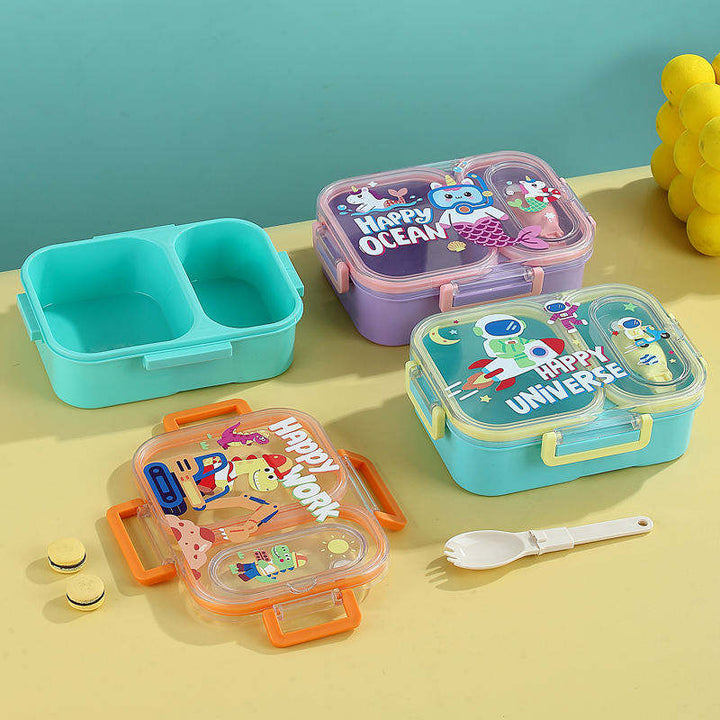900ml 2 Grid Plastic Happy Kids Tiffin Box